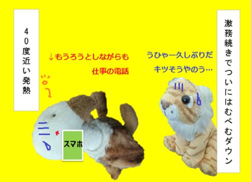 応援していただけると5分ごとにシャツを取りかえて喜びます毎回すさまじいまでのうなされぶりでね(しばらくゆっくり養生させてあげたいわ)