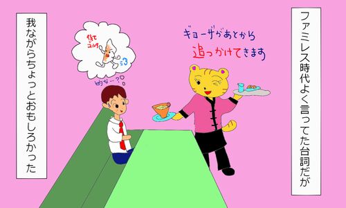 前職(ファミレス)時代の話。 セットにはたいがい餃子がついていたが、メイン料理と一緒に出せることは多くなく。 とりあえずできたもんから提供していくため、「餃子はあとからまいります」って一言添えるのが常だった。 全部提供終わった後に「以上でご注…